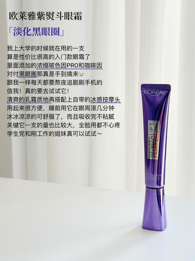 我上大学的时候就在用的一支,算是性价比很高的入门款眼霜了,里面添加的浓缩玻色因PRO和,对付黑眼圈那真是手到擒来,跟我一样每天都要熬夜追剧刷手机的,信我,真的要去试试它。